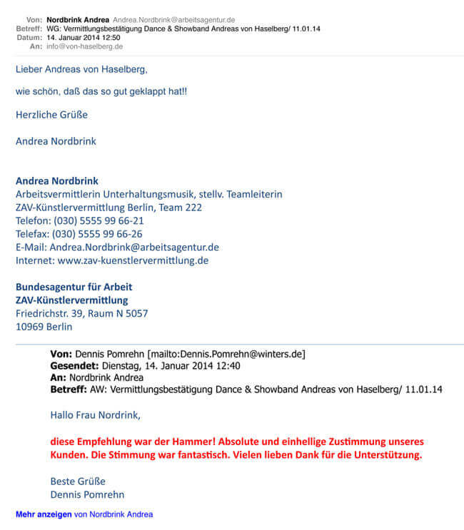Die Dance & Showband Andreas von Haselberg ist mit ihrer großen Erfahrung als Liveband die erste Wahl für eine perfekte Hochzeitsfeier.